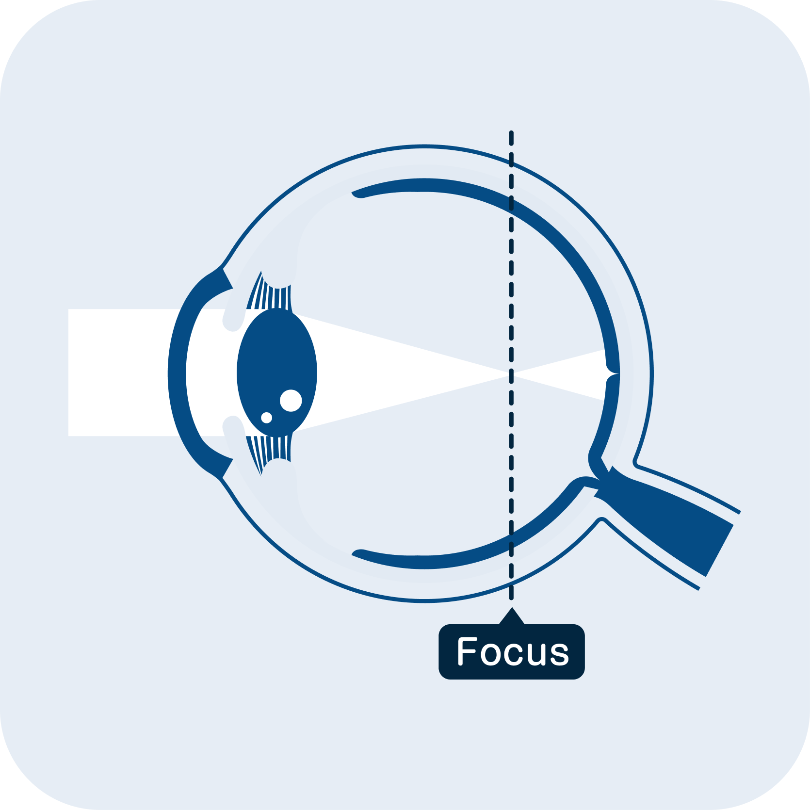 Un occhio emmetrope (senza difetti visivi), grazie al potere convergente di due strutture oculari, cornea e cristallino, focalizza tutte le immagini proveniente dal mondo esterno (sia vicine che lontane) a livello retinico, dove sono presenti le cellule visive. Infatti per avere una visione nitida, l’immagine deve focalizzarsi sulle cellule retiniche visive. Se questa si focalizza anteriormente o posteriormente ad esse, si vede sfocato.
