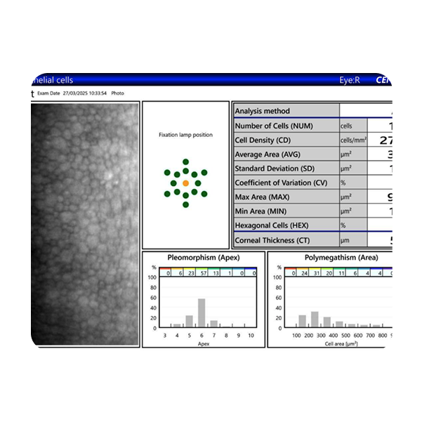 • Valutazione Preoperatoria: è importante valutare la funzione delle cellule endoteliali prima di interventi chirurgici come l’intervento di cataratta, di glaucoma o il trapianto corneale